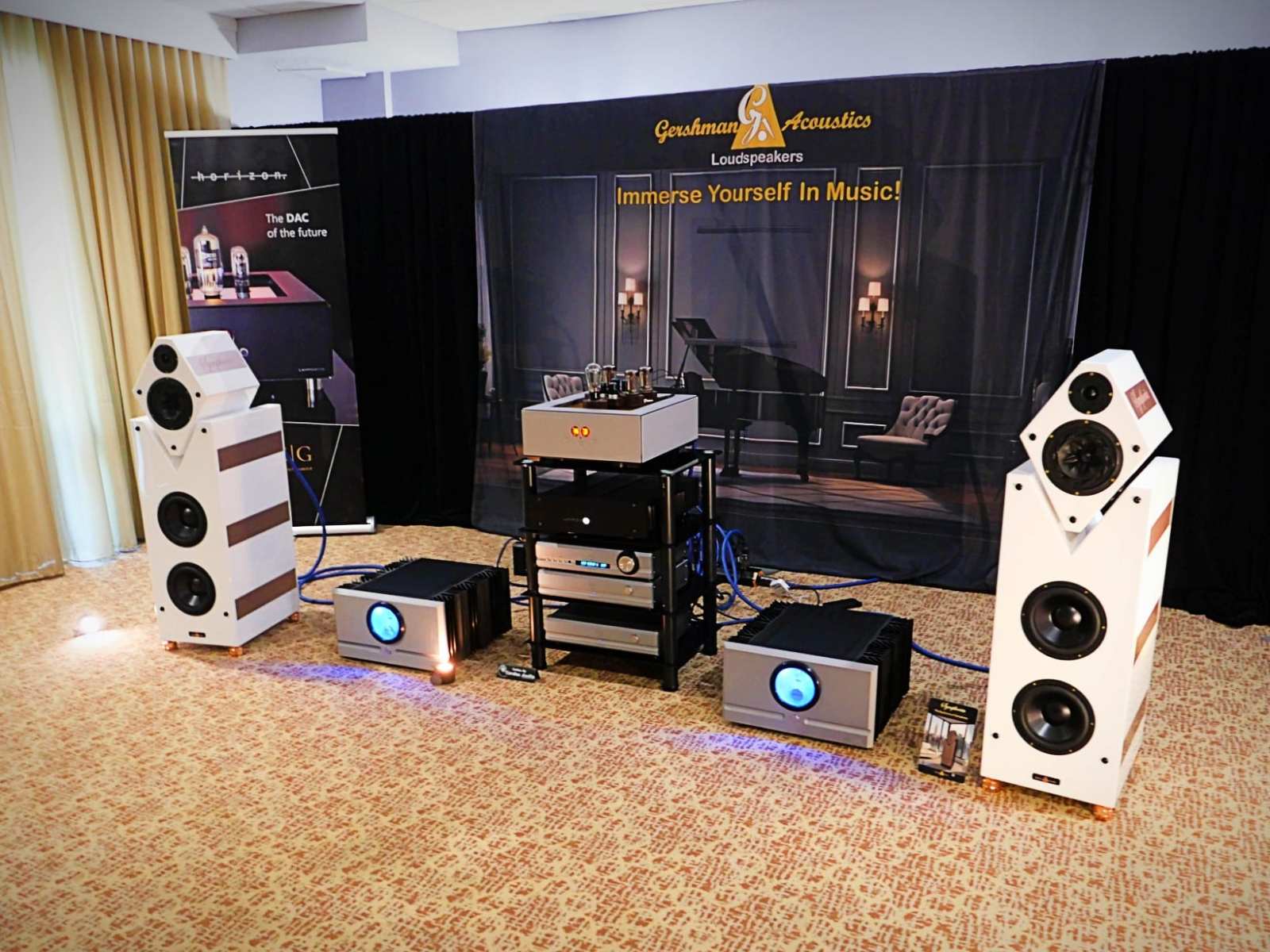 Toen ik hierboven zei “de gebruikelijke verdachten” dacht ik aan exposanten zoals Acora Acoustics en VAC die bij mij in de top vijf staan bij bijna elke beurs. Tegelijkertijd mag ik deze toewijding nooit als vanzelfsprekend beschouwen. Zowel Valerio Cora als Kevin Hayes weten hoe ze een show moeten neerzetten en het publiek kunnen laten trillen als maar weinig fabrikanten. In de afgelopen jaren zijn deze exhibitzalen steeds verfijnder geworden, wat zich zeker vertaalt in beter geluid, maar ik moet nogmaals opmerken dat deze nieuwe enorme “bibliotheek”-achtergrond die ze op de achterwand gebruiken, een ruimtelijk en ontspannen sfeer creëert.