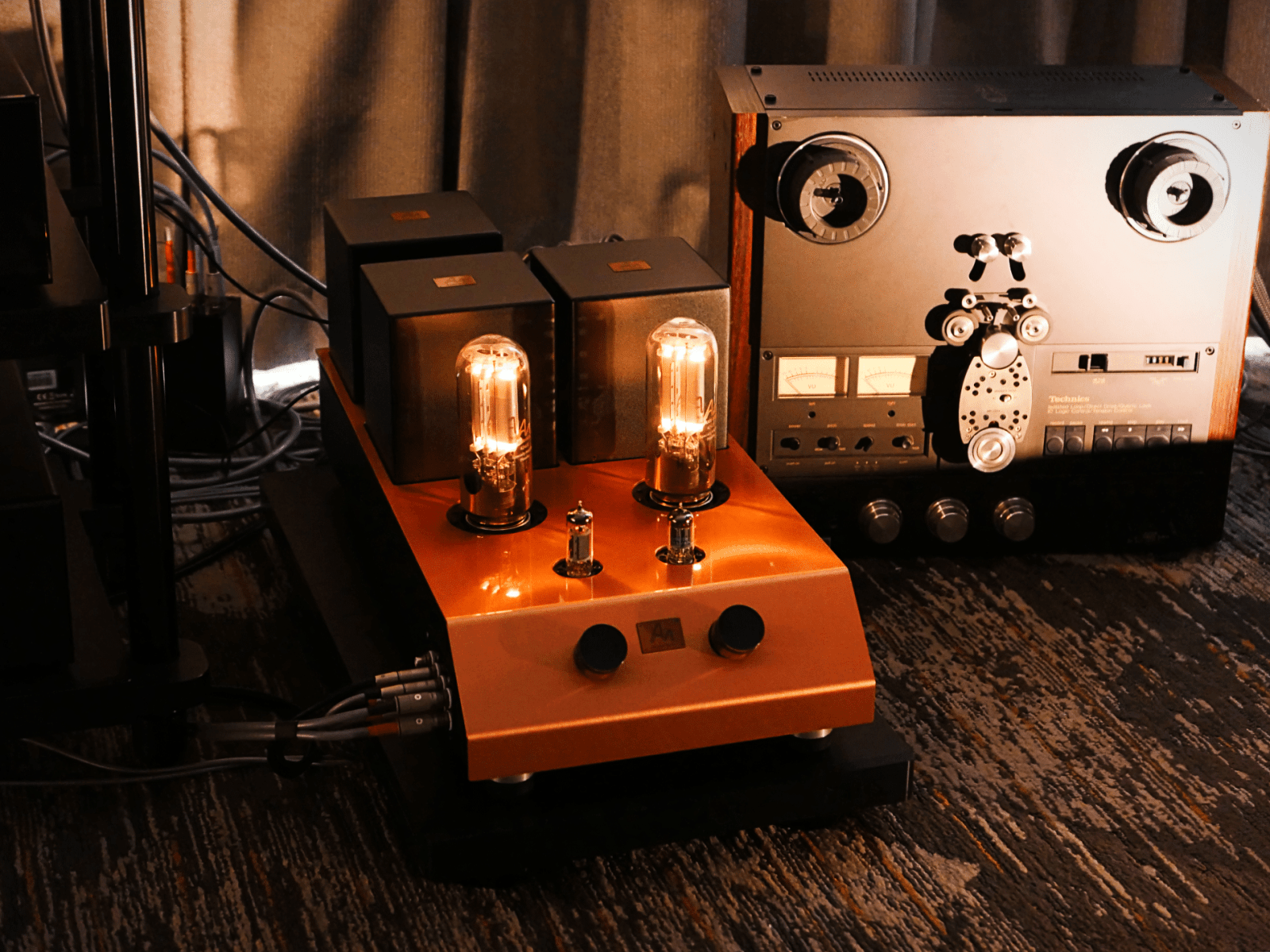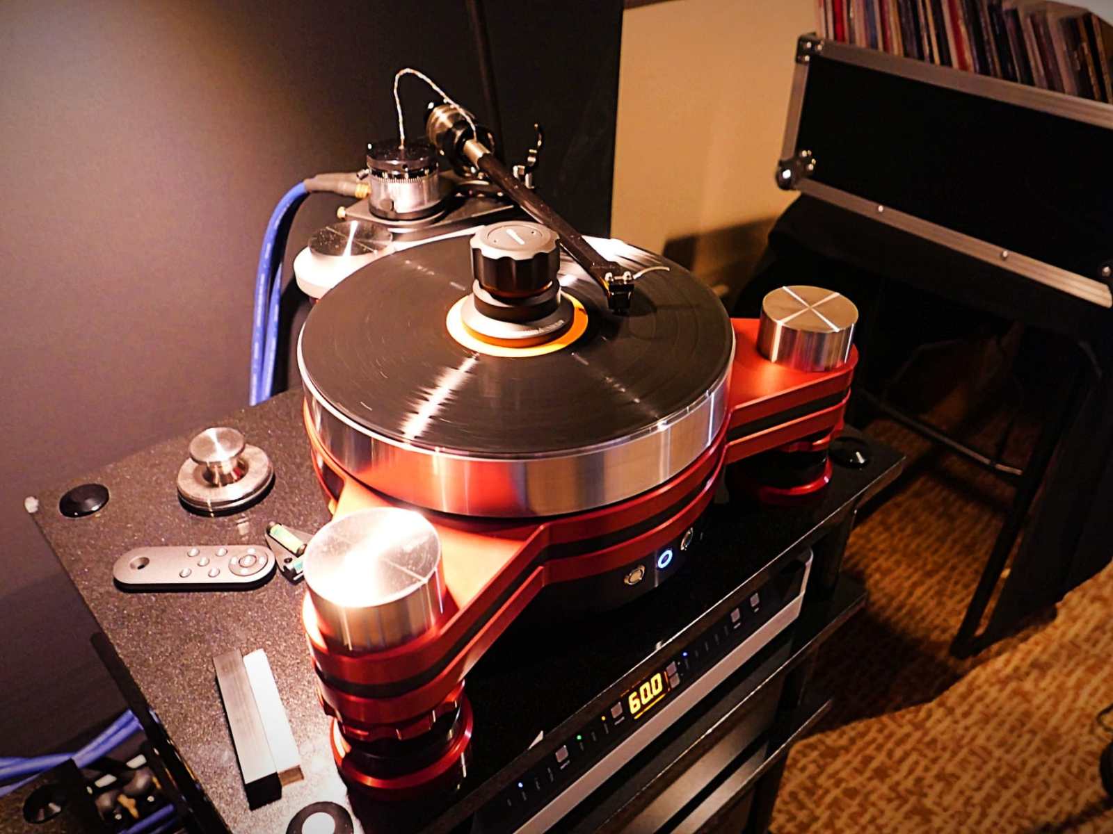 Deze specifieke installatie, gekoppeld aan voldoende VAC-versterking, had een extra geheime wapen—een reel-to-reel (bandrecorder) van Sonorus. Toen ik de kamer bezocht, zaten Scott Walker en Damon Von Schweikert een analoge bandopname van een Wynton Marsalis-opname te spelen die een van de meest indrukwekkende geluidsbeeldomgevingen die ik ooit heb gehoord. Dat geluidsbeeld was zo breed dat ik de drummer precies buiten de rechterluidspreker plaatst zag, en de pianist aan de linkerzijde, met waarschijnlijk twintig voeten of meer afstand tussen hen, en ik kon ze nog steeds voelen samenspelen in een bevredigend geheel. Niet elk hi-fi-systeem kan dit voor elkaar krijgen zonder te spreken over center-fill, maar niet elk hi-fi-systeem heeft een paar VSA Ultra 11’s.