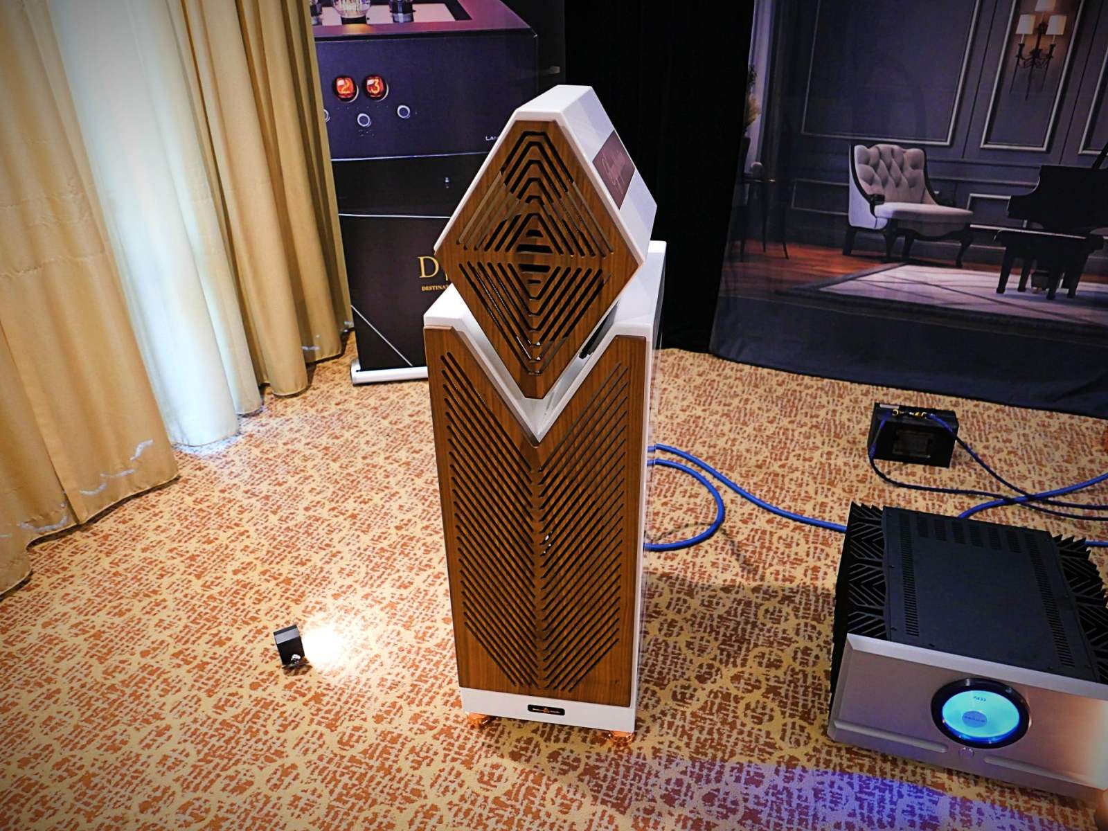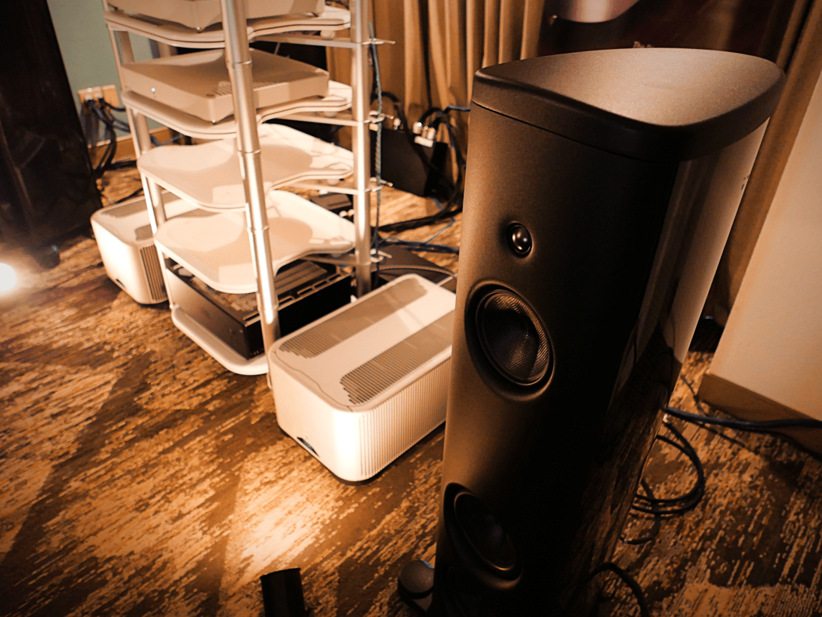 Het hi-fi-gerei tussen de Symphorias was niet minder indrukwekkend of mooi—die LampizatOr Horizon 360 DAC, die eruitzag als een hyper-exotische SET, stal bijna de show van die prachtige witte torens. Ook was het een waar genoegen om Pass Labs-versterkers overal tijdens de Florida Audio Show 2026 te zien—elke kamer met Pass erin, vond ik, klonk spectaculair. Maar de Symphorias zijn een van die hi-fi-producten die grondig onder de loep moeten worden genomen van dichtbij, omdat de afwerking zo verfijnd is.