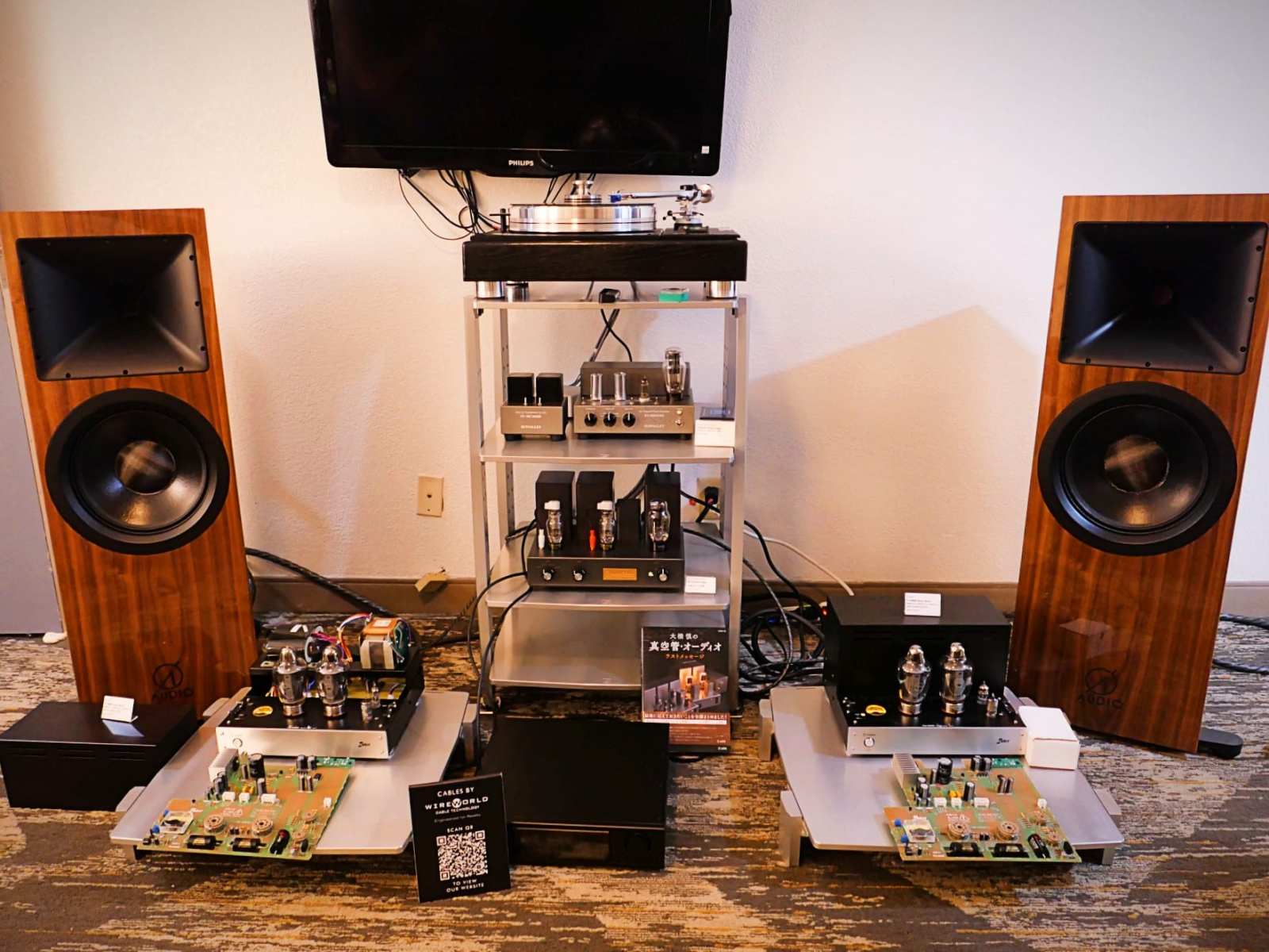 ADrian Ford-Crush van UK en ik zaten in deze kamer tijdens de Florida Audio Expo 2026 en probeerden te achterhalen welk systeem completer was. (De aanwezigheid van de AN-E Sogons kon de schaal misschien in het voordeel van dit beurs-systeem kantelen, maar de nieuwe Meishu Kapellmeister die ik in Engeland hoorde, zou wel eens de ultimatieve 300B-versterker kunnen zijn.) Iets wat ik wil benadrukken: de sweet spot zat verrassend genoeg in de voorste rij, in een positie die nabij-veld luisteren benadert. Een bezoeker zat in de tweede rij en zei dat hij het niet begreep. Nadat hij de kamer verliet, schoof ik naar de voorste rij en werd ik onmiddellijk ondergedompeld in een nieuw, moedig universum waar alle muziek logisch werd en klonk als het echte werk. Ik zal dit systeem en de manier waarop het klonk nooit vergeten.