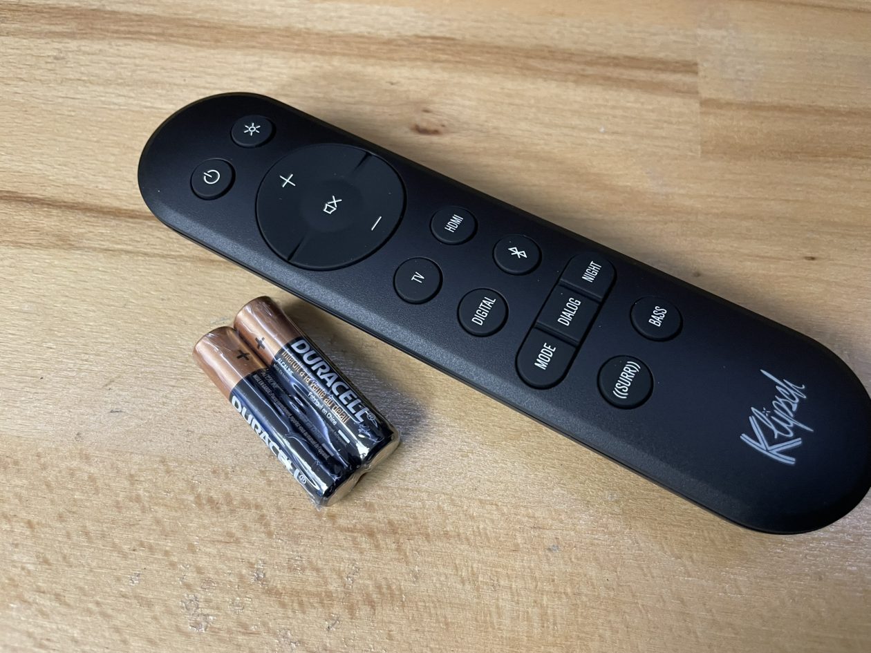 De afwerking is typisch Klipsch: satijnen ebbenhouten fineer, metalen roosters en akoestisch doek zorgen samen voor een uiterlijk dat zowel robuust als elegant is. De verpakking bevat: de soundbar, een HDMI 2.1-kabel van 1,5 m, een voedingskabel, een backlit afstandsbediening en een kalibratiemicrofoon voor automatische akoestische aanpassing. Klipsch levert echt stevig materiaal, in alle betekenissen van het woord!